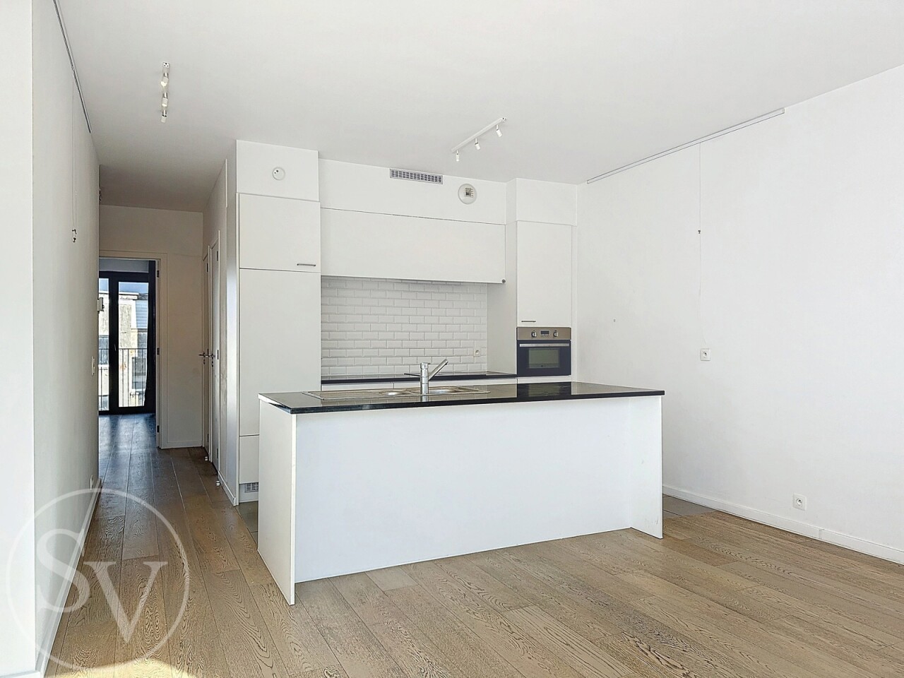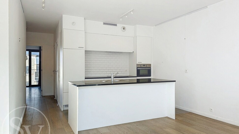 U komt binnen via de inkomhal met toegang tot een lichte, open woonkamer. De open keuken met granieten werkblad is volledig uitgerust: vaatwasser, inductiekookplaat, combi-oven, koelkast met vriesvak en dampkap. Vanuit de woonkamer stap je zo het langgerekte balkon op met zicht op de Vestingstraat, ideaal voor een aperitief in de avondzon.