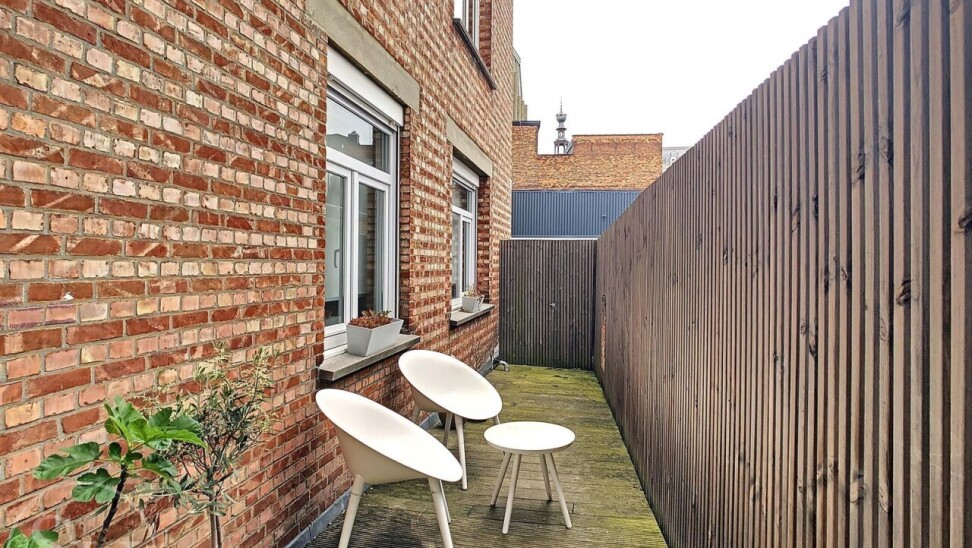 Het zuidwest georiënteerde stadsterras (13 m²) is bereikbaar via de hal en vormt de perfecte plek om te genieten van de middag- en avondzon.