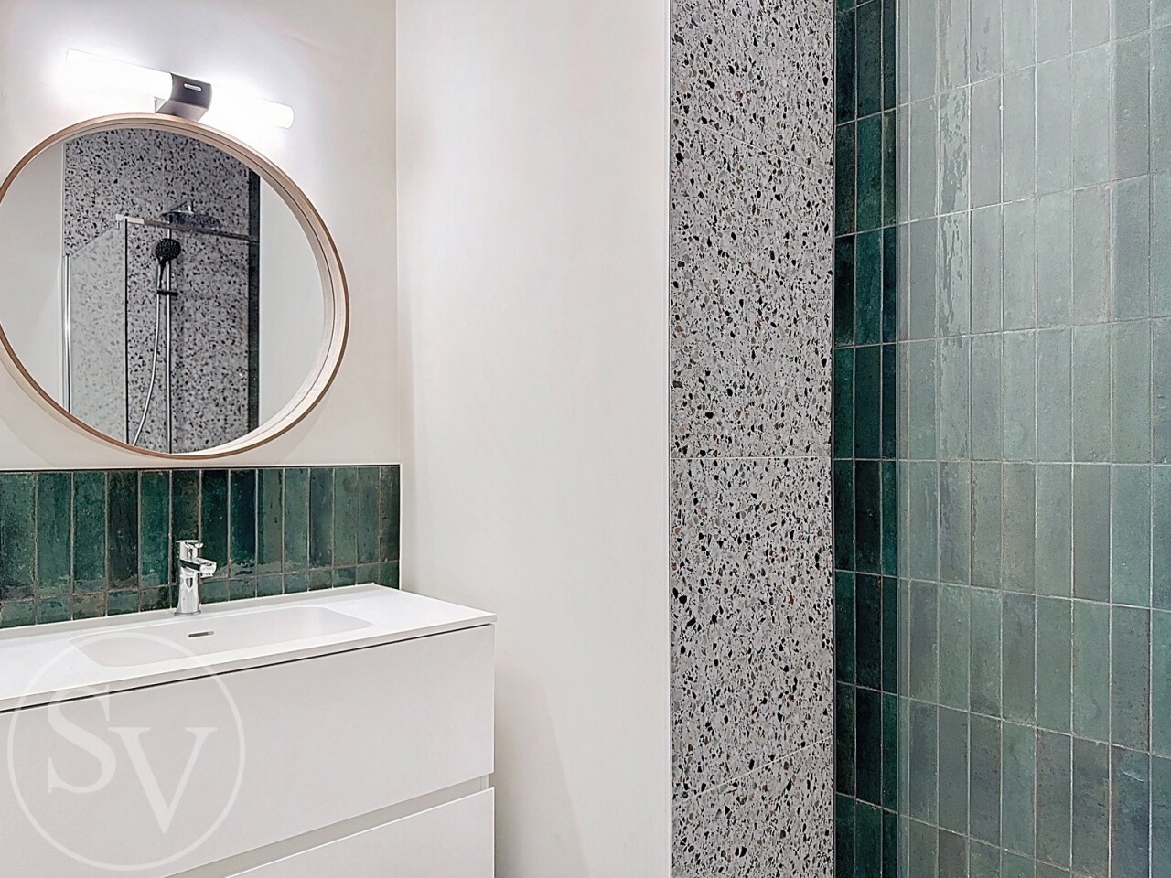 Via de hal bereikt u de slaapkamer, de badkamer met inloopdouche en lavabo in meubel, een afzonderlijk toilet en een bergruimte met aansluiting voor uw wasmachine.