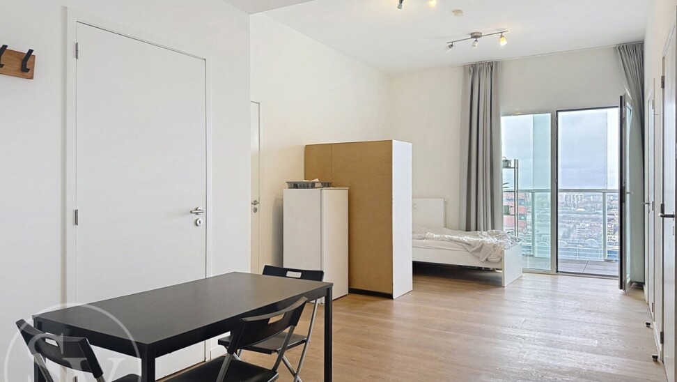 Dit sfeervolle appartement van ca. 81 m² (incl. terras) bevindt zich op de 20ste verdieping van een van de mooiste woontorens van Antwerpen en biedt een panoramisch zicht richting het Eilandje en het stadscentrum.