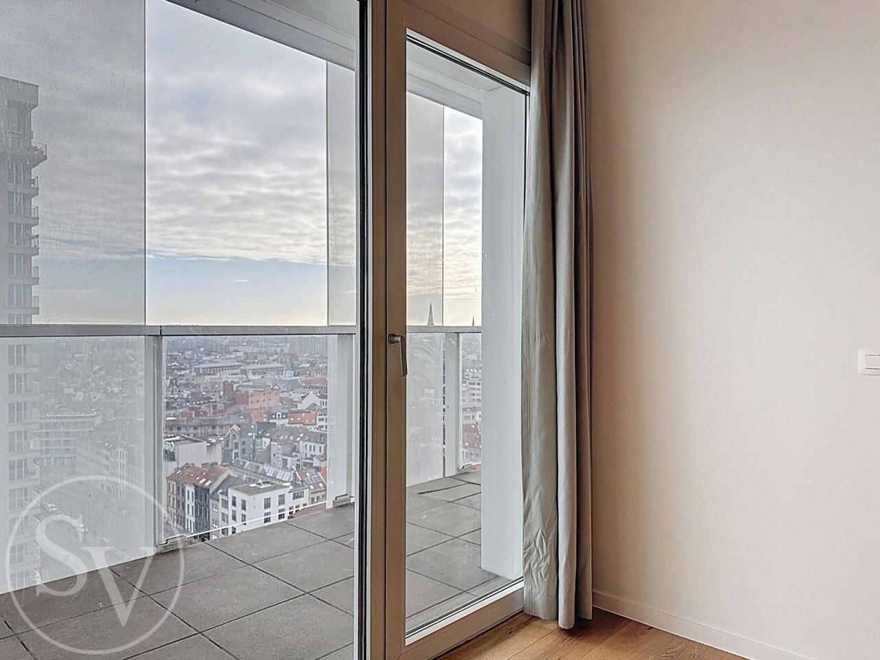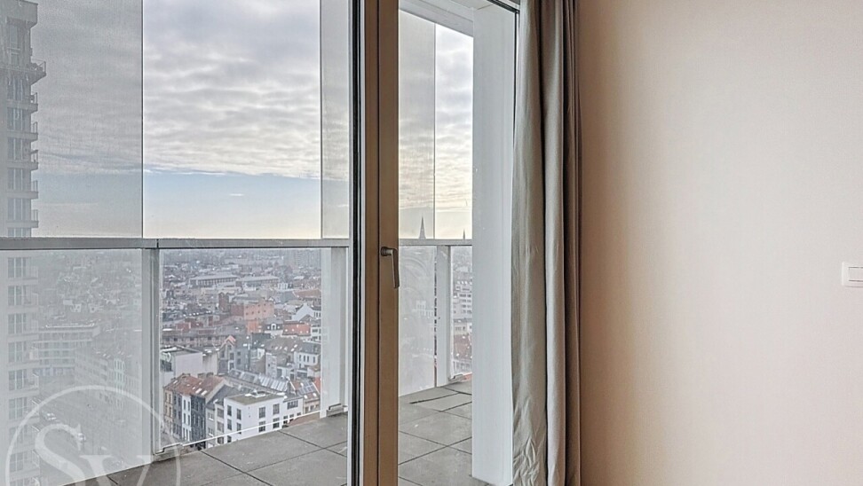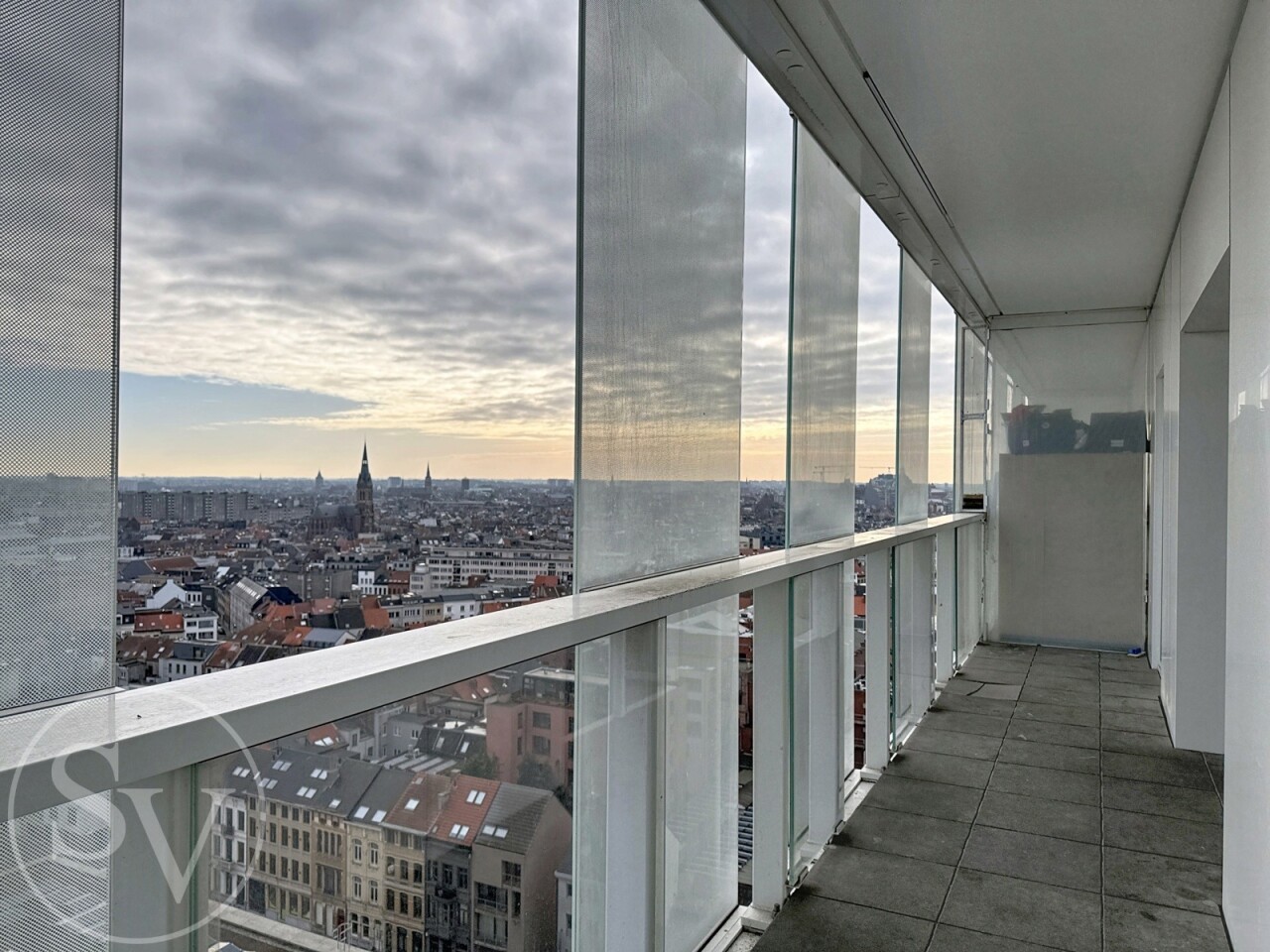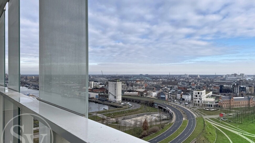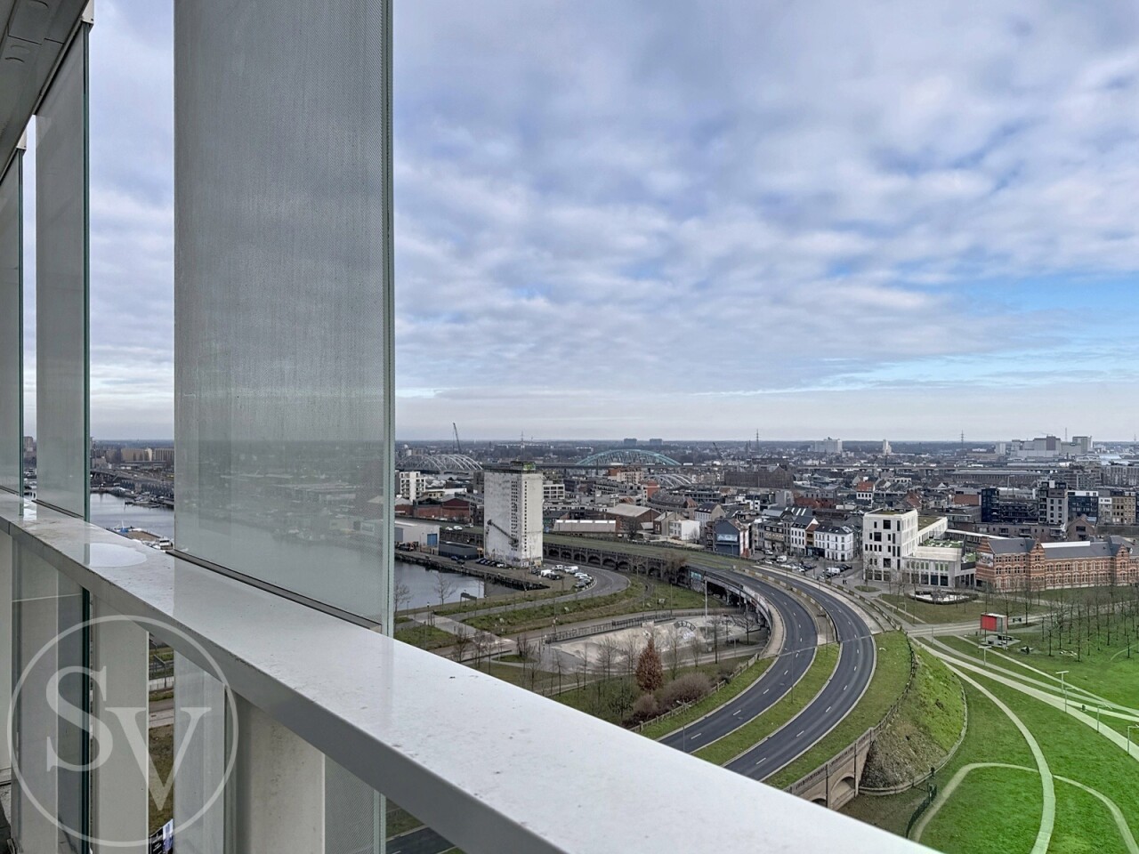 Dit sfeervolle appartement van ca. 81 m² (incl. terras) bevindt zich op de 13de verdieping van een van de mooiste woontorens van Antwerpen en biedt een panoramisch zicht richting Park Spoor Noord en het Kempisch dok.