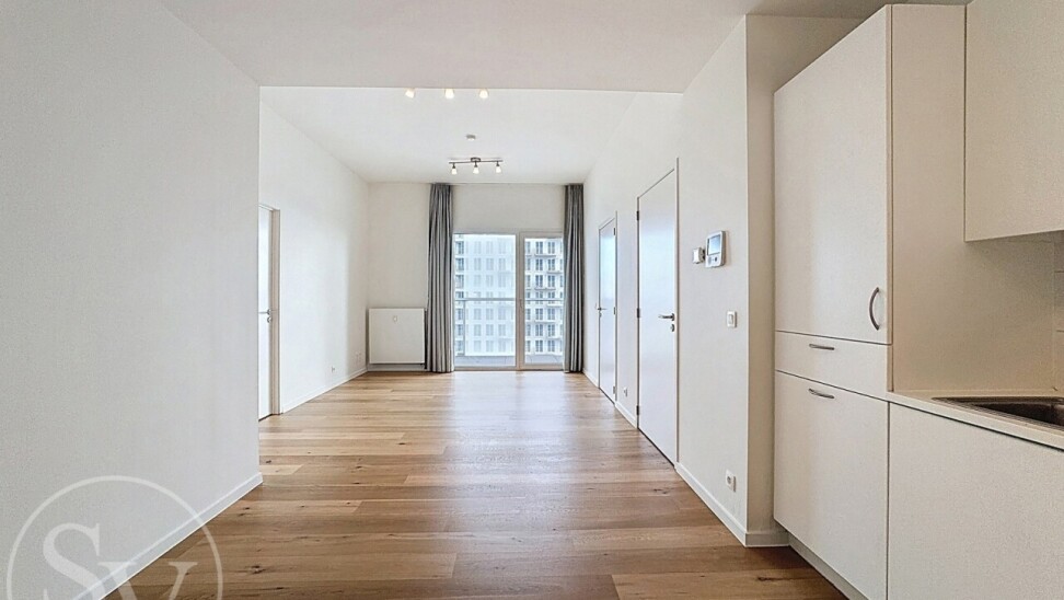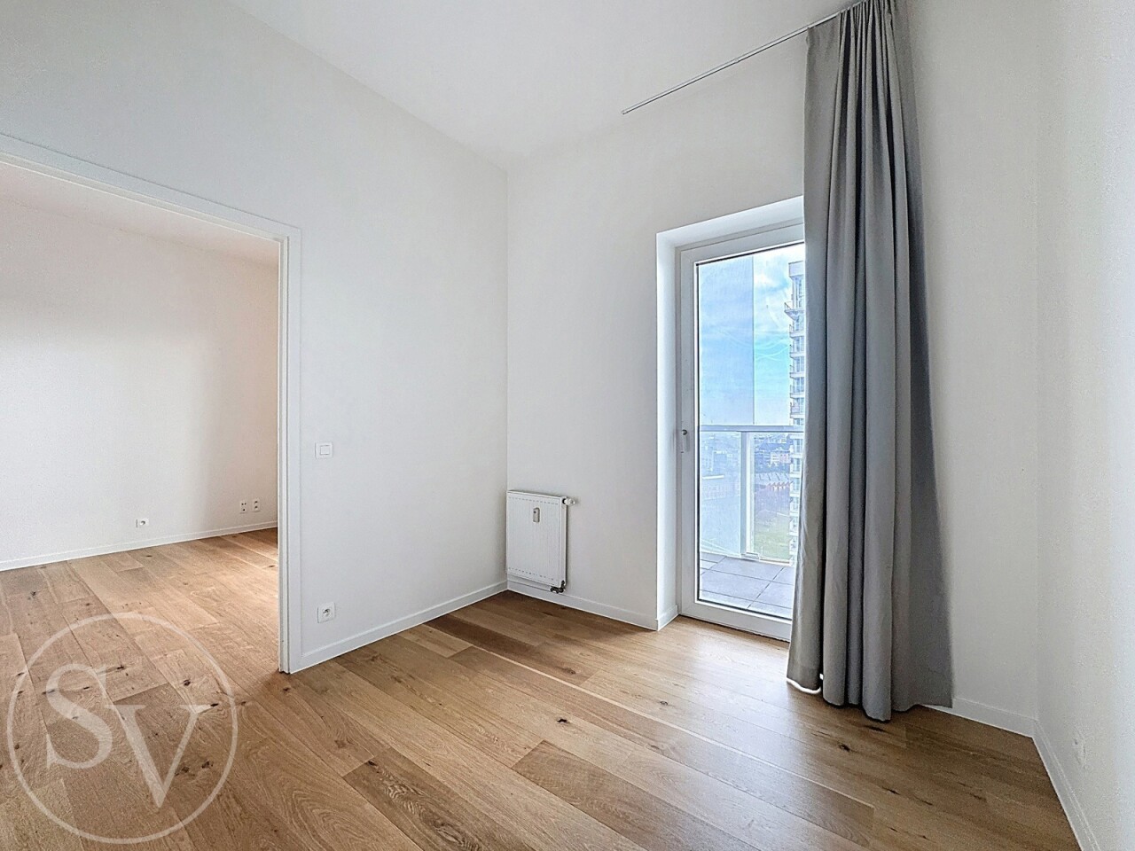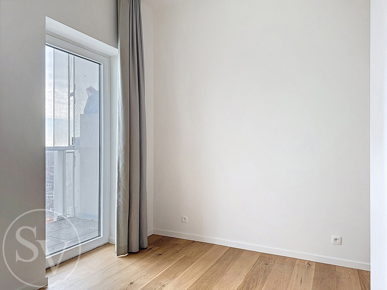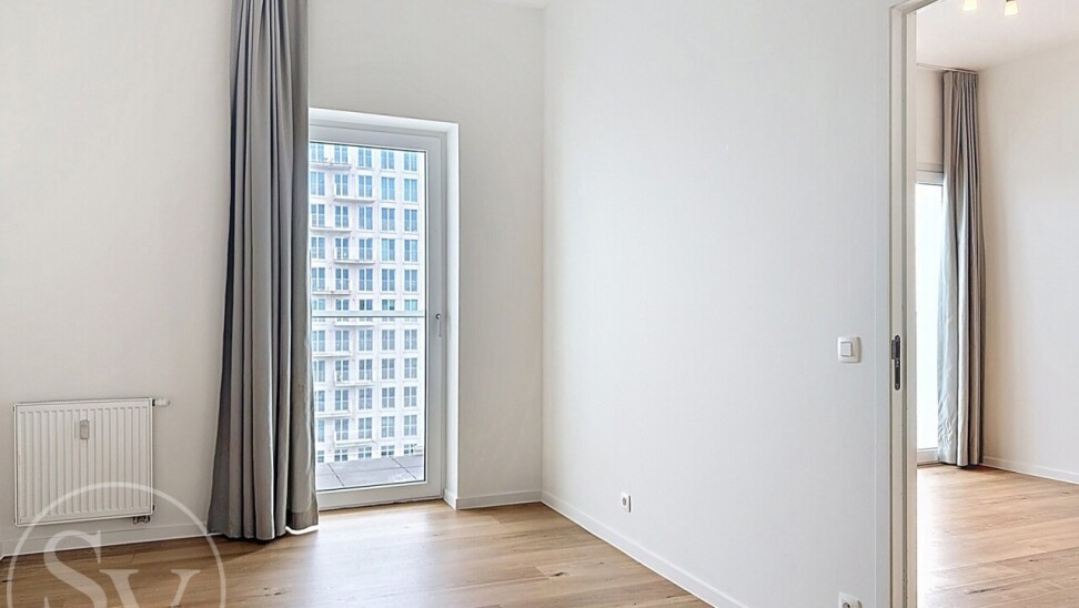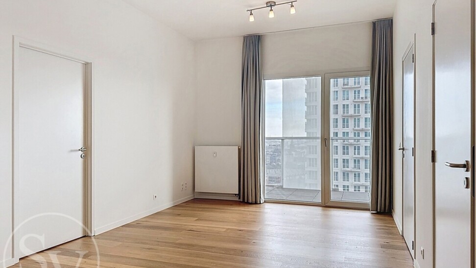 Dit sfeervolle appartement van ca. 81 m² (incl. terras) bevindt zich op de 13de verdieping van een van de mooiste woontorens van Antwerpen en biedt een panoramisch zicht richting Park Spoor Noord en het Kempisch dok.