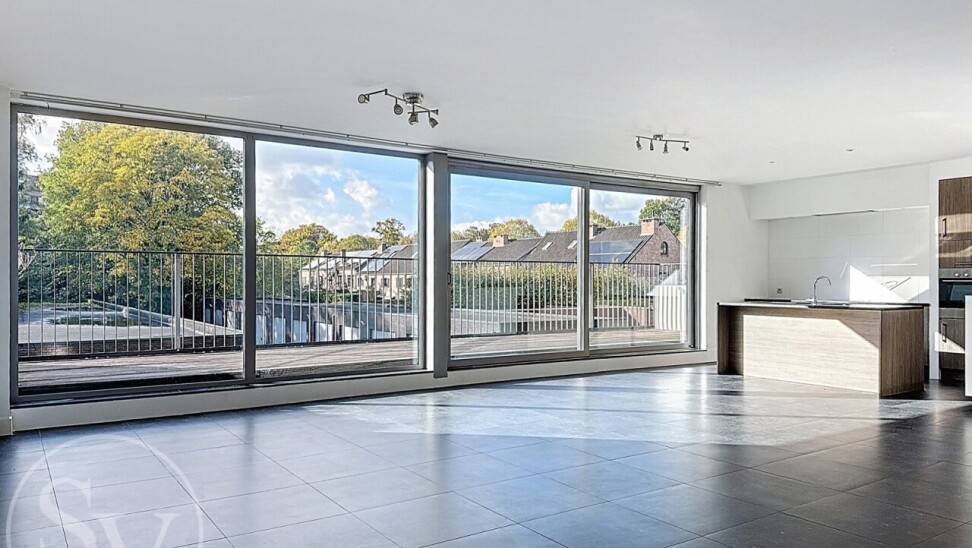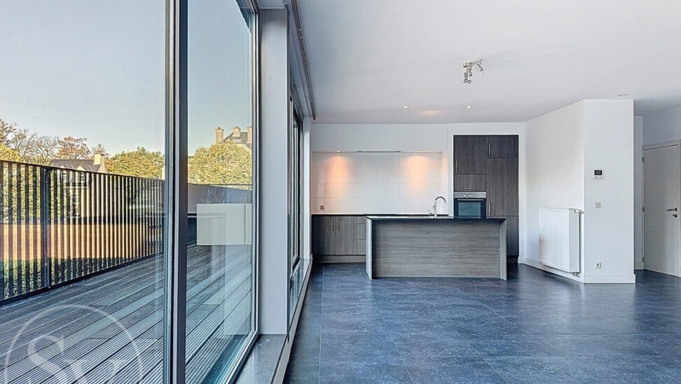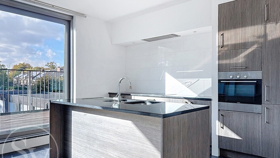 Bij binnenkomst treft u een inkomhal met vestiairekast. De lichte en ruime woonkamer van 50m² geeft uit op het terras en geniet van een vrij uitzicht. Aansluitend bevindt zich de volledig uitgeruste open keuken van 12 m², met vaatwasser, elektrisch fornuis, dampkap, oven, koelkast, diepvries en voldoende opbergruimte in de kasten.