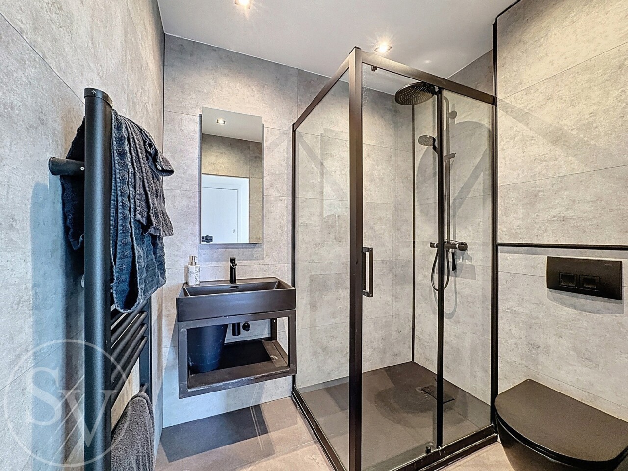 Indeling: inkomhal, gezellige woonkamer met aansluitend een zonnig terras, ingerichte keuken, badkamer met lavabo in meubel, inloopdouche en toilet, en een slaapkamer met vaste kasten.