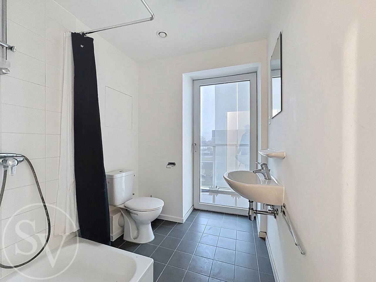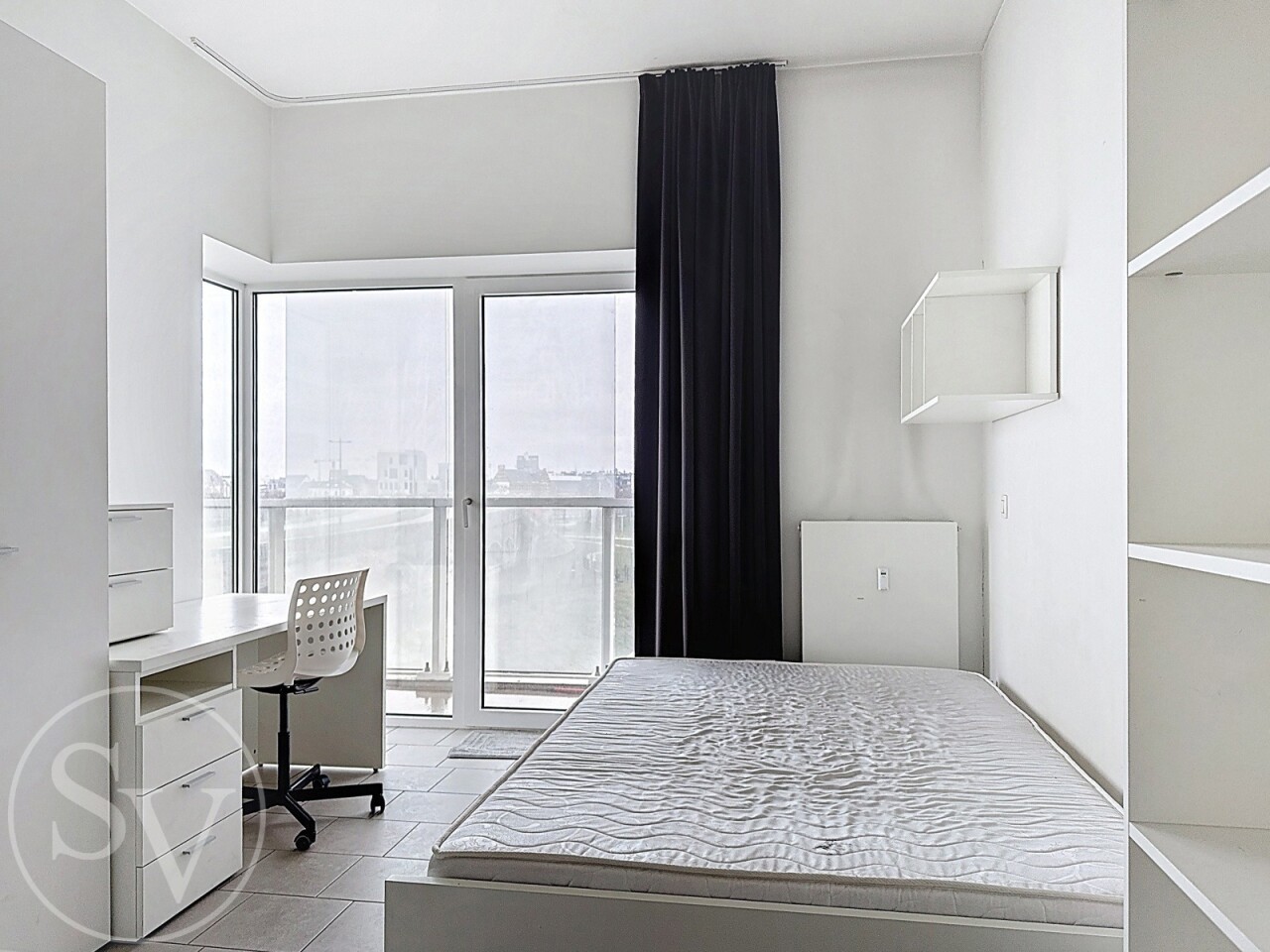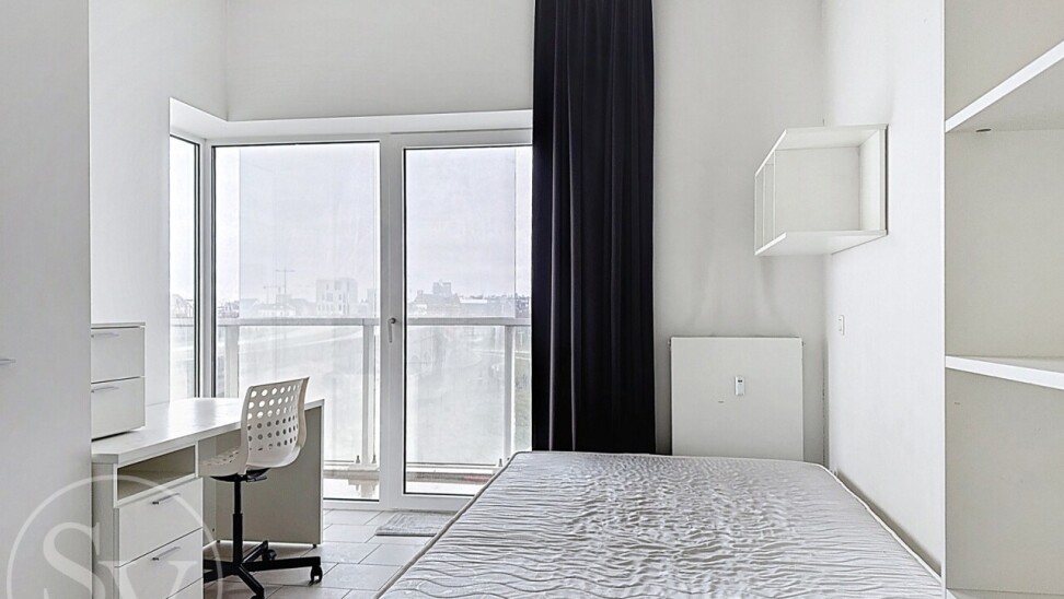 Hoek-kamer gelegen op de 1ste verdieping van Residentie Parktoren – tussen het Eilandje en Park Spoor Noord. Dit aanbod omvat:
