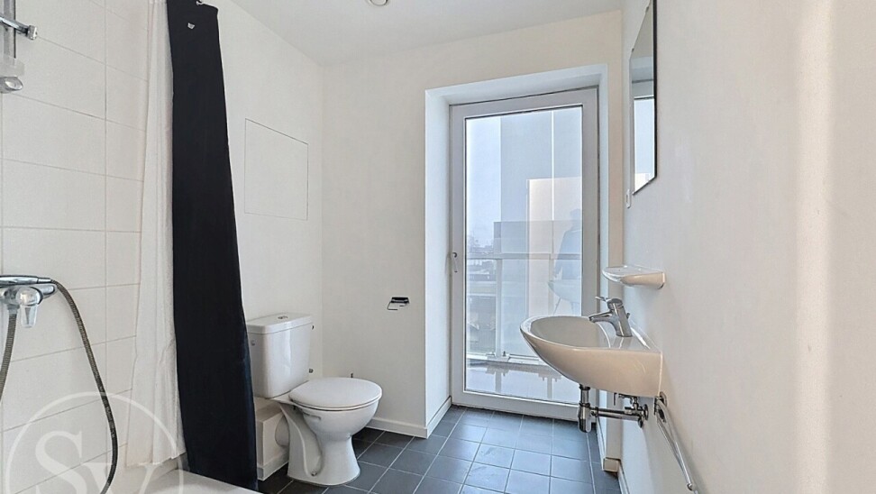 Deze aantrekkelijke studentenkamer is gezellig ingedeeld en ligt op de hoek van het gebouw, orientatie Park Spoor Noord / Kempisch dok. De leef/slaapruimte is voorzien van een keukenwand en toegang tot het terras. De badkamer is uitgerust met een douche, lavabo en toilet en heeft een groot raam welk zorg voor natuurlijk licht en ventilatie. Het hoekterras met uitzicht richting Park Spoor Noord en het Kempisch dok is bijna 19m² groot. Hierop kan je in de ochtend en avond genieten van de zon. Er is tevens een compacte bergruimte met aansluiting voor je wasmachine, én op de gemeenschappelijke gang vind je een extra privatieve bergkast.